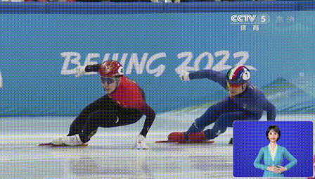 「聆語」解說短道速滑男子 1000 米決賽,任子威奪金。