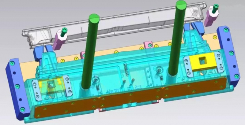 斜頂上帶行位,四周滑塊案例,車燈模具,爆炸行位內(nèi)出斜頂加反行位