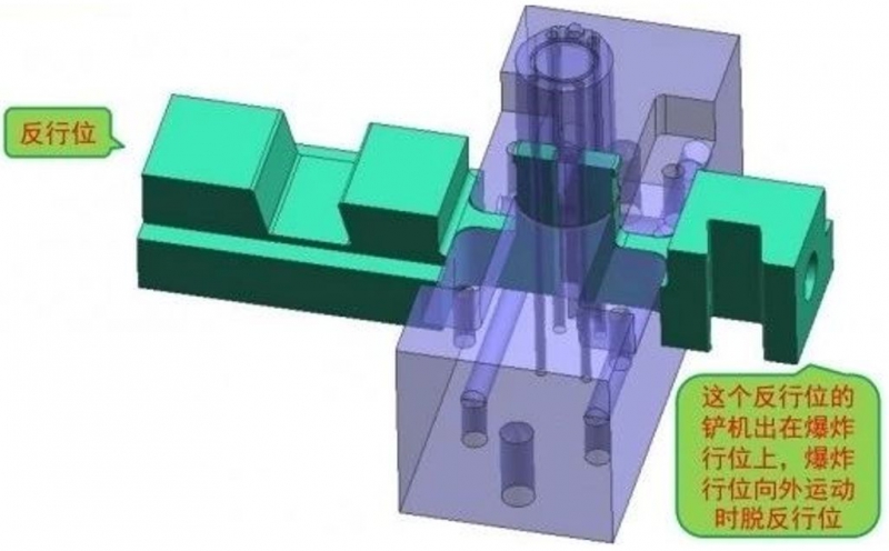 斜頂上帶行位,四周滑塊案例,車燈模具,爆炸行位內(nèi)出斜頂加反行位