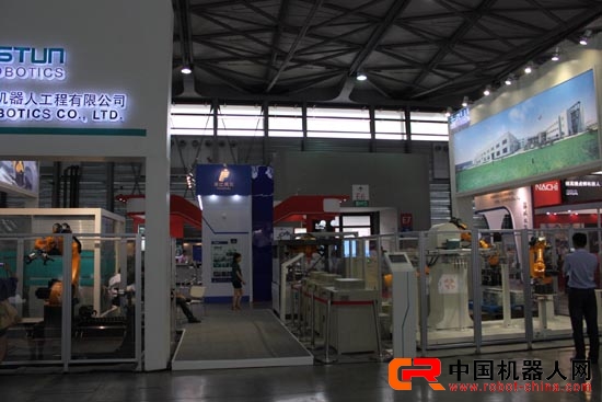 2012中國機(jī)器人產(chǎn)業(yè)推進(jìn)大會(huì)暨 2012中國(上海)國際機(jī)器人展覽會(huì)在上海新國際博覽中心開幕。圖為部分參展商展臺(tái)。
