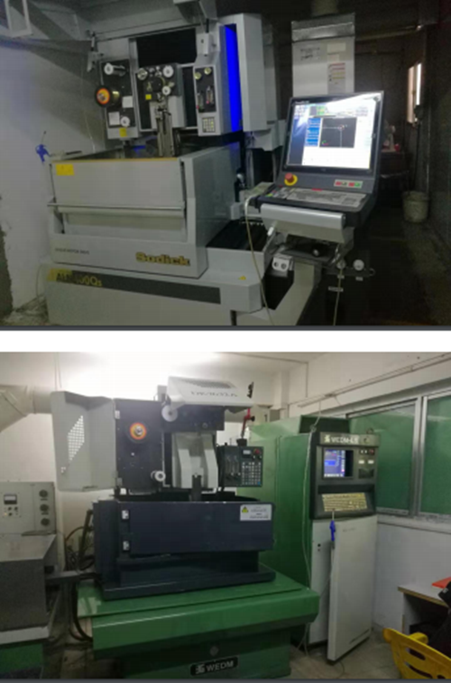 3 檢測設(shè)備有一臺思瑞 3 次元和 2 臺 2.5 次元。6 臺 CNC 數(shù)控電腦鑼,6 臺快走絲,2 臺日本沙迪克慢走絲,10 臺數(shù)控 EDM 火花機(jī),6 臺普通鑼床,8 臺進(jìn)口磨床,9 臺注塑機(jī) 100 噸至250 噸。