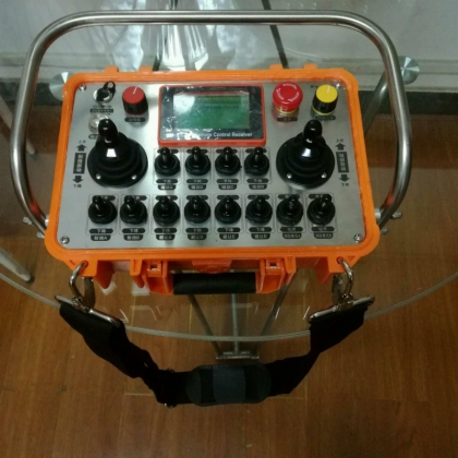 旋挖機遙控器,整套包含1臺發(fā)射器+1臺接收器,實際需要20米,本次按照100米提供,接收器端對應(yīng)16路動作常開點繼電器輸出,1路模擬量0-10V輸出,另有急停對應(yīng)2路輸出含1路常開點+1路常閉點,常規(guī)使用常開點,常閉點作為備用。