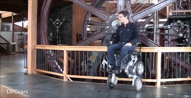 輪椅在很大程度上幫助了行動(dòng)不便利人們的出行,但它并非是想全能,比如爬坡和樓梯面前,普通輪椅就完全無(wú)解了。不過(guò)Segway平衡車創(chuàng)始人Dean Kamen腦洞開(kāi)得夠大,既然普通輪椅上不了樓梯,那么就讓它站起來(lái)好了,名為iBot的輪椅就此誕生。