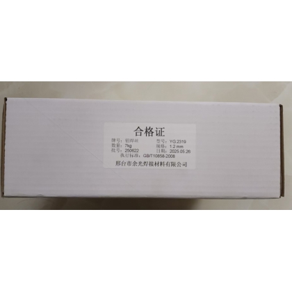說明: YG.2319是鋁銅合金焊絲,Cu含量≥5.8%,該焊接材料具有良好的焊接工藝性能,焊縫成形美觀光亮、電弧穩(wěn)定、飛濺小。