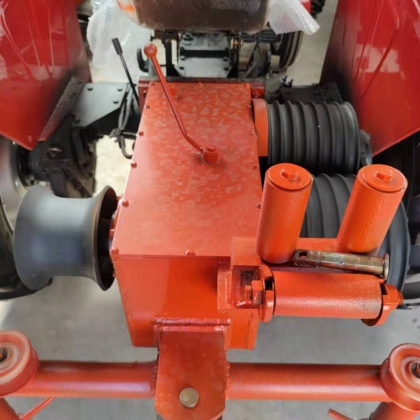 收排線裝置牽引箱帶有離合拔叉,行駛時(shí)拖拉機(jī)和牽引箱分離;牽引纏繞鋼絲時(shí)更為靈活;帶有支撐,牽引時(shí)輪胎壓力減小,整機(jī)穩(wěn)定性好;剎車(chē)性